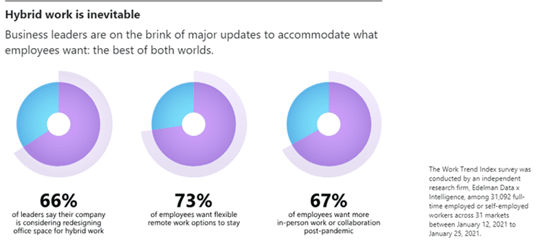 Microsoft’s Work Trend Index 2021 shows that 66% of leaders are considering evolving their corporate spaces towards a hybrid way of working.