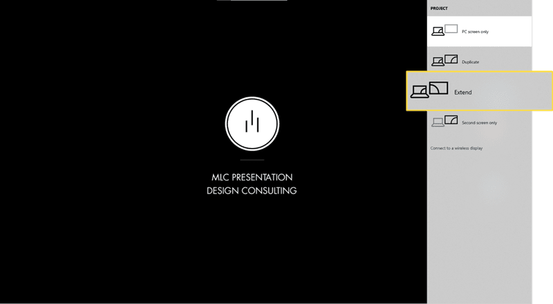 This step is critical to have the control center on your laptop and use the projector screen to share slides with your two audiences.